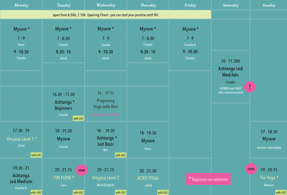 We open the Studio at 6.50am, you can come and start your practice up to 1 hour before the end :-)